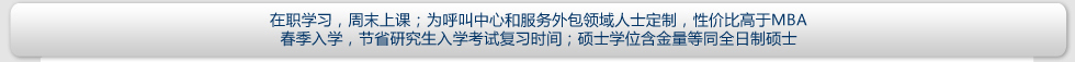 | 報名條件 | 擁護中國憲法,遵守法律、法規(guī),品行端正,身體健康,并能堅持在職學(xué)習(xí); 大專及以上學(xué)歷,旨在提高本人專業(yè)素質(zhì)和學(xué)歷層次的 社會在職人士均可報名;擇優(yōu)錄取。 呼叫中心、服務(wù)外包領(lǐng)域的中高級從業(yè)者,英語基礎(chǔ)良好的人士將獲得優(yōu)先錄取機會。 |