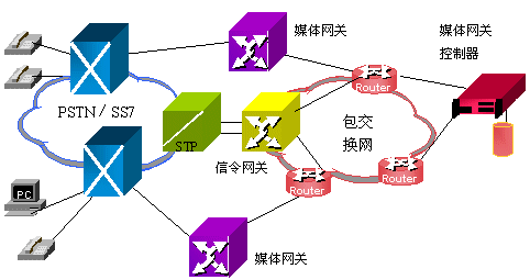 分布式VoIP網關是目前比較普遍的一種應用,所以我們詳細講解它的結構。分布式VoIP網關包括三部分:信令網關、媒體網關和媒體網關控制器。