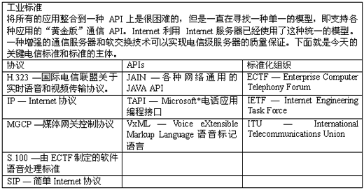 用于Internet服務(wù)器模型的開(kāi)放的標(biāo)準(zhǔn)化的軟件解決方案也起到了一定的作用,新的Internet和數(shù)據(jù)庫(kù)服務(wù)器使得電子商務(wù)成為可能而軟交換和綜合通訊服務(wù)器使得v_Business成為可能。