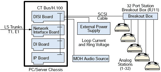 DISI16R2, DISI24R2, 和 DISI32R2 可以通過CTbus與其他集成的網(wǎng)絡(luò)接口和資源板卡連接構(gòu)成可擴(kuò)展的中繼和座席交換的配置.