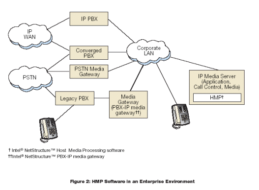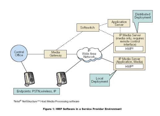 HMP軟件結構與Dialogic Dialogic 板卡DM3結構同樣的方式, 但不需要專門的硬件。